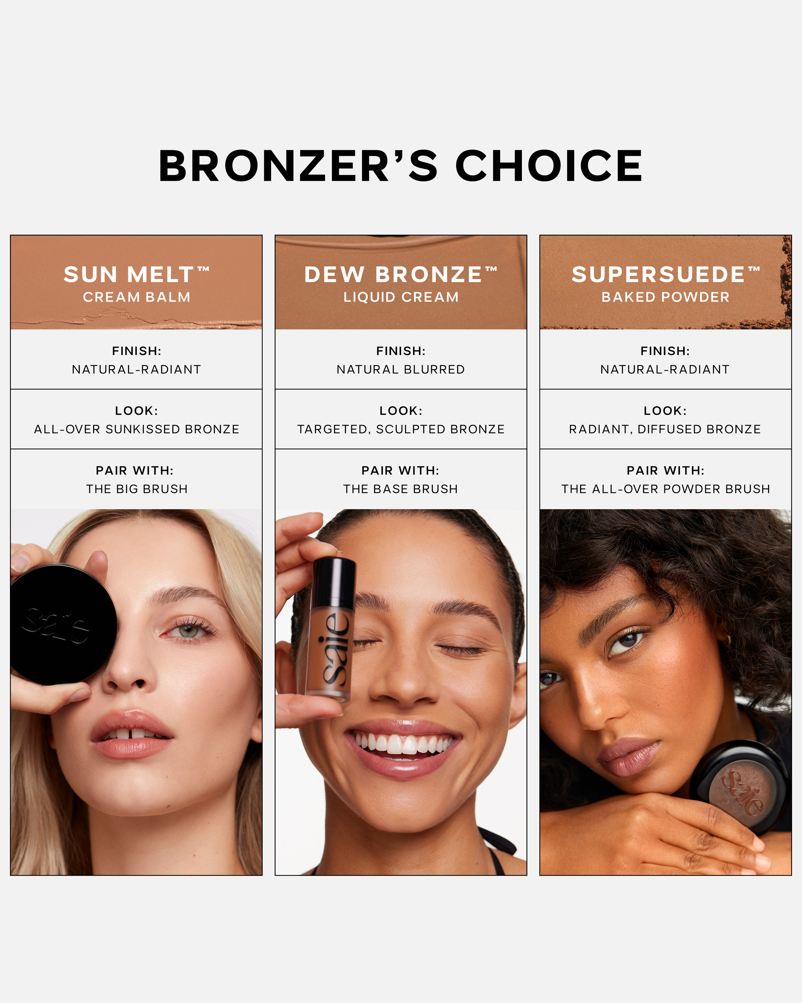 A lightweight, buildable liquid-cream bronzer for a subtly defined bronze.