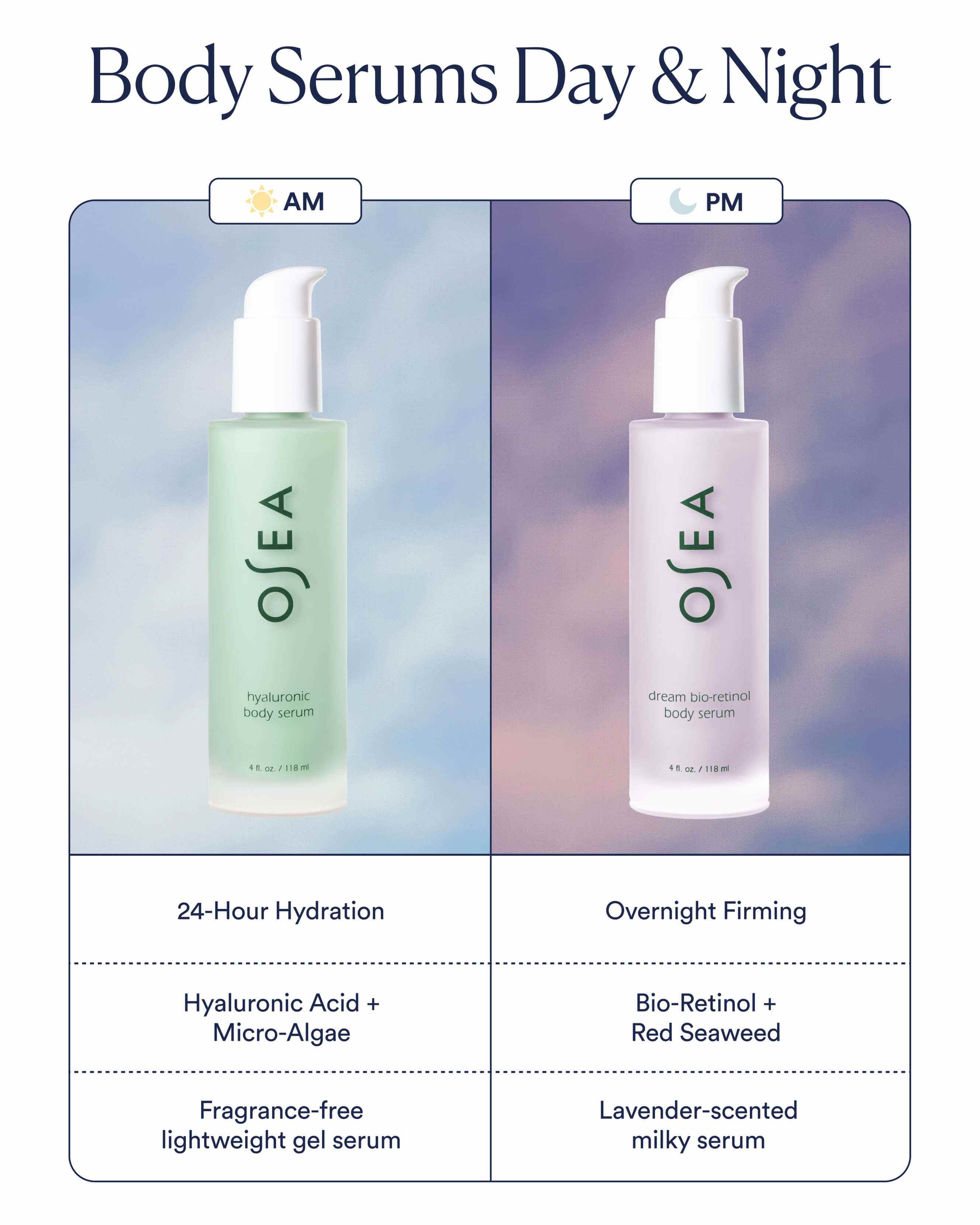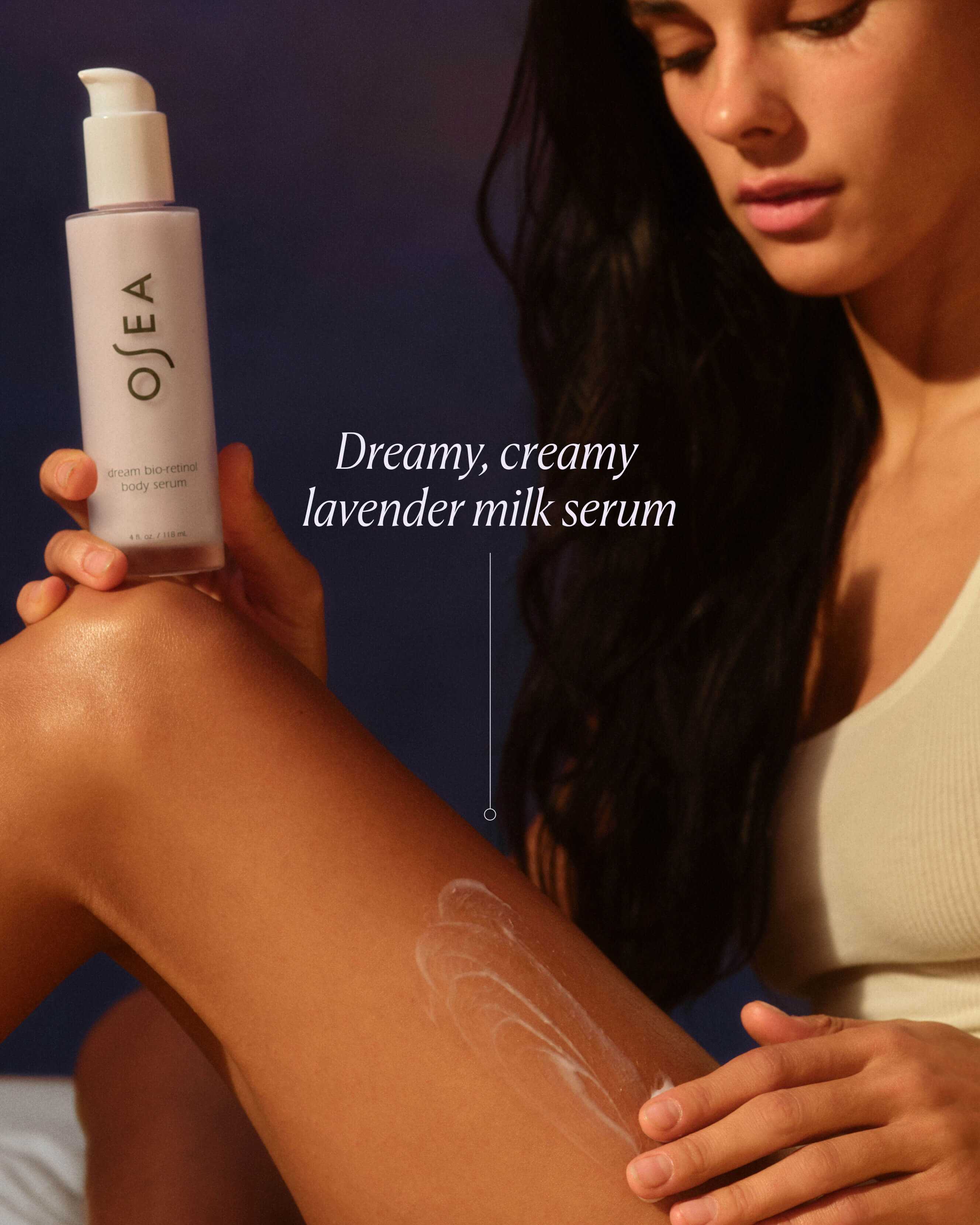 Dreamy body serum powered by bio-retinol & red seaweed to visibly firm & boost radiance, while lavender + magnesium promote a sense of serenity.