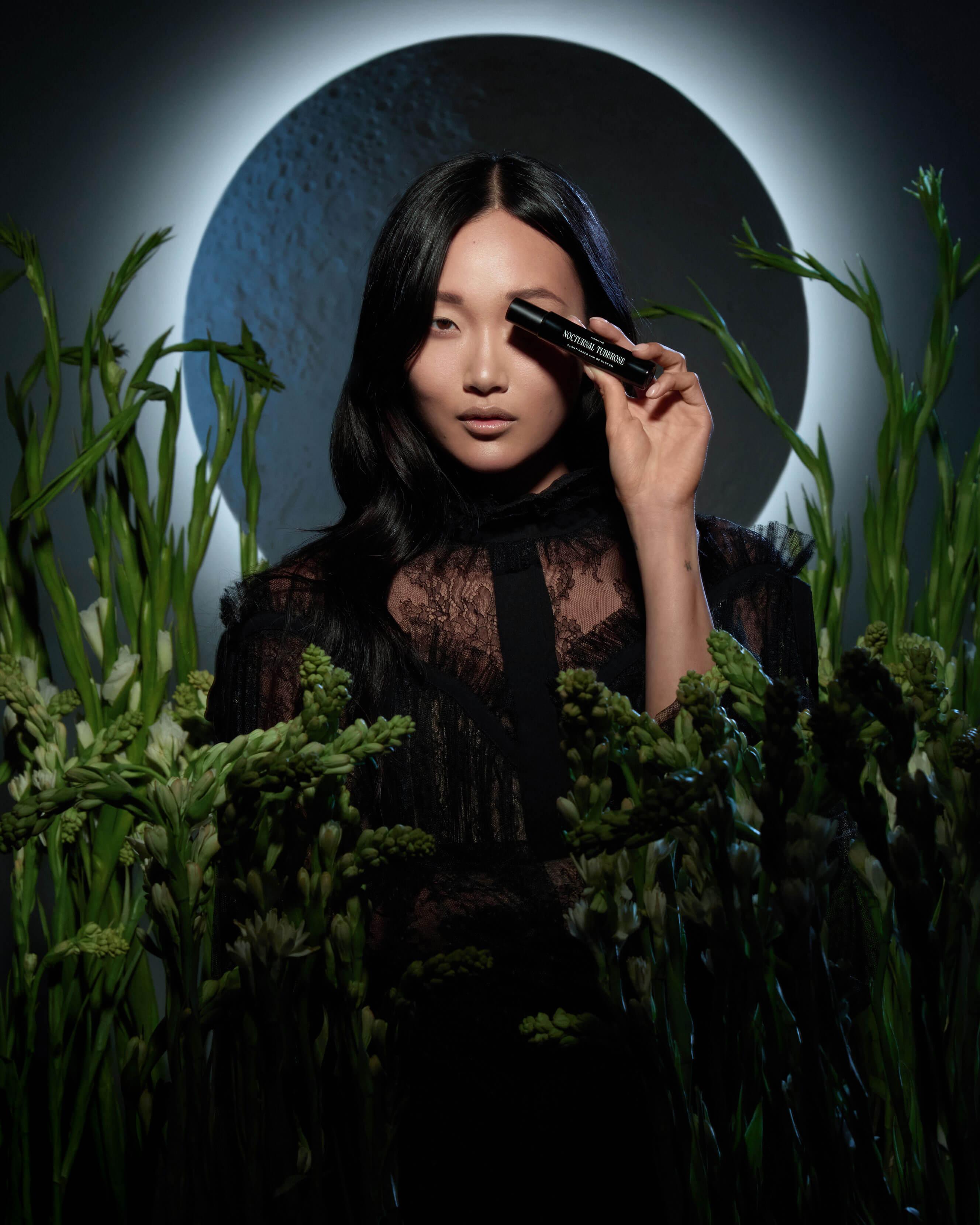 Cream white blossoms are delicately balanced by honeyed notes of orange blossom and sensual, soft green gardenia that conjure depth and radiance.