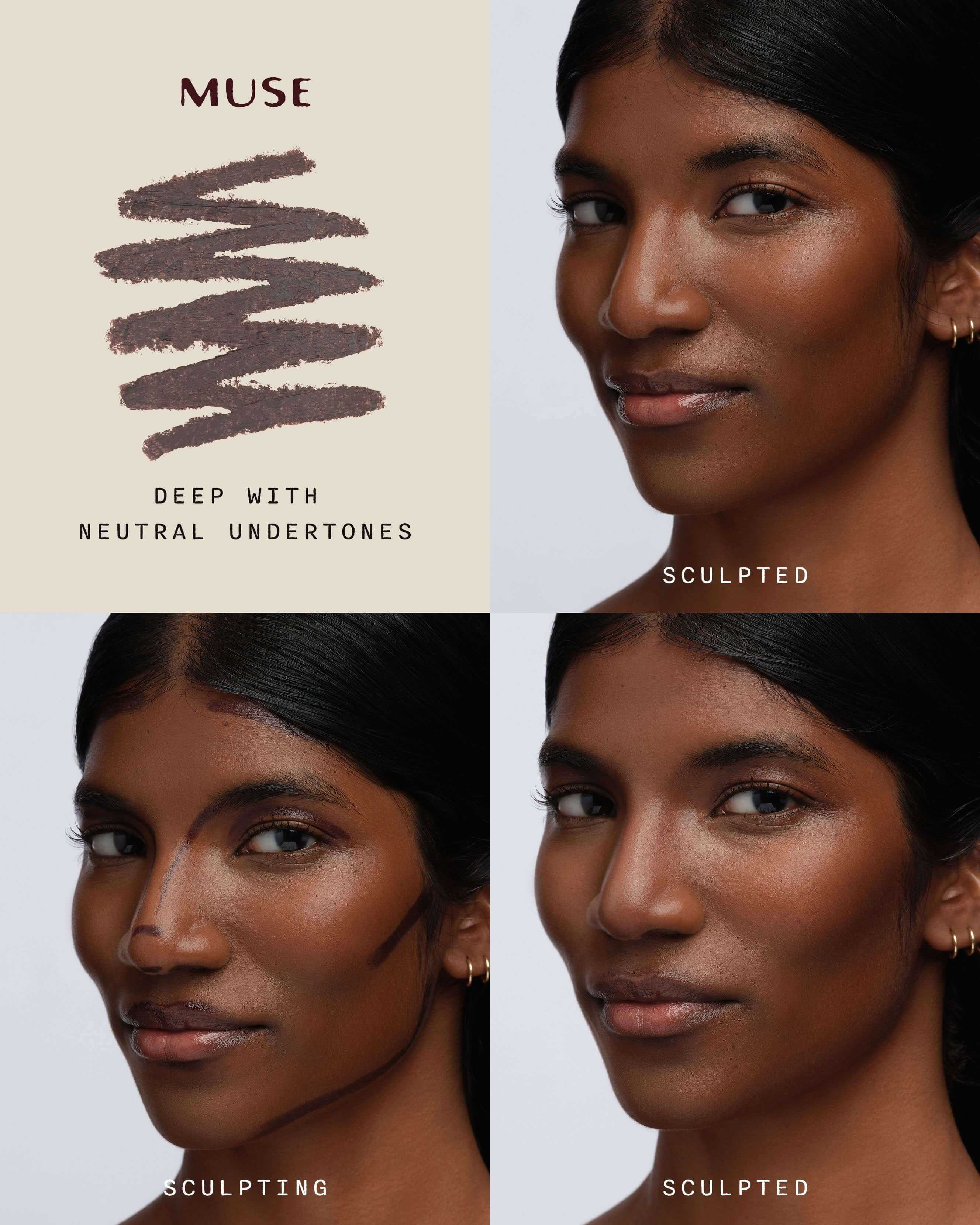 A refillable, pen-sized sculpting stick for soft, buildable definition that's never harsh and never overdone. Five neutral shades. A three-angle rectangular tip. Sculpting that actually looks like skin.