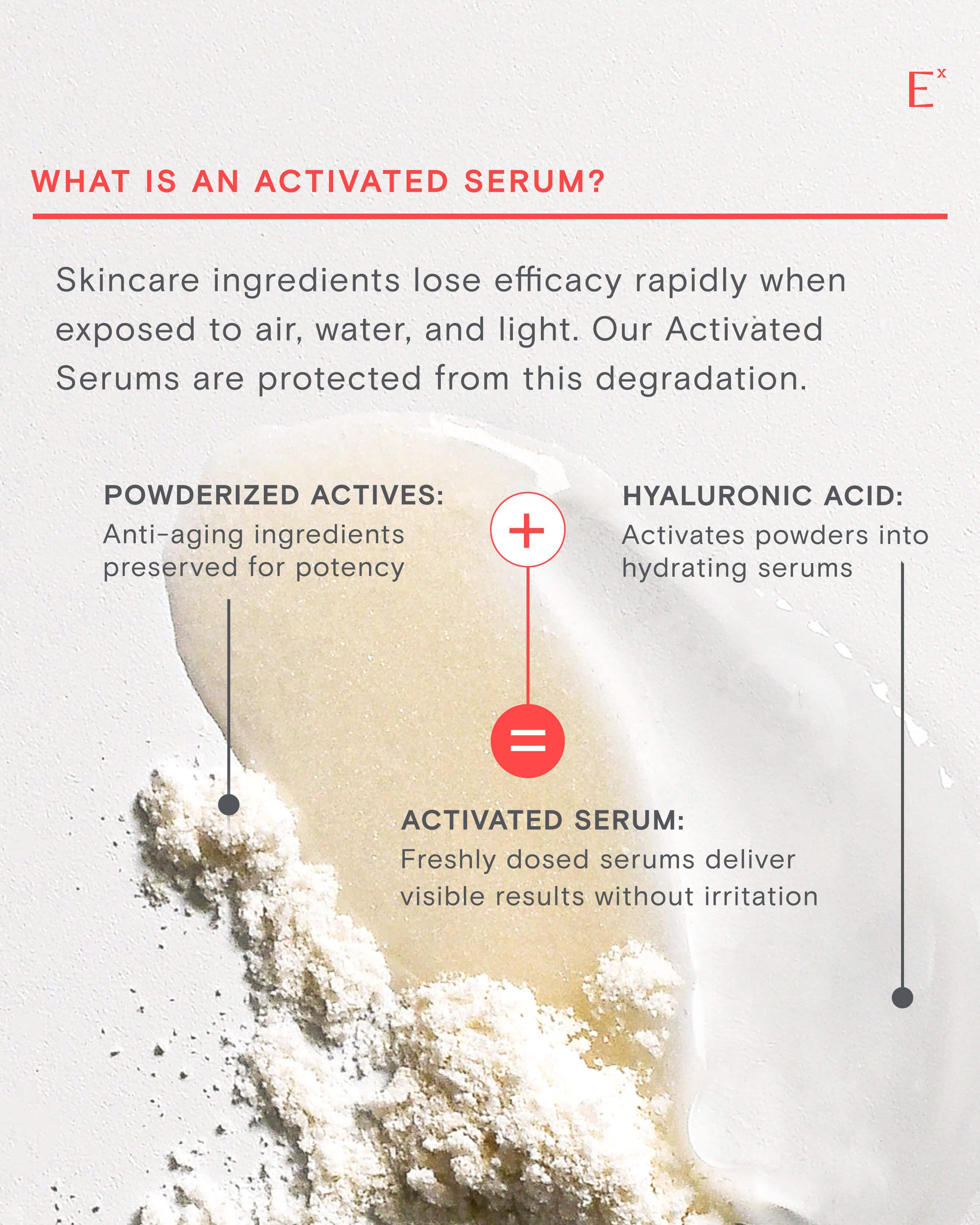 A Hyaluronic Acid Refill to be used in any Exponent Power Serum. Four weights of Hyaluronic Acid molecules activate our potent anti-aging Powders to transform into a potent, hyper-hydrating serum with proven clinical results.